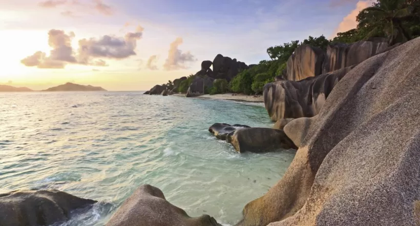 La Digue Island showcases all the beauty of the Seychelles. Located 6 km southeast of Praslin, this small paradise is the third-largest island in the Seychelles, despite being only 5 km by 3 km. It features turquoise waters perfect for swimming, lush vegetation that is home to giant tortoises, and fine sandy beaches fringed with coconut trees and surrounded by iconic large granite rocks with pink highlights, like those at the famous Anse Source d’Argent. The island remains authentic and preserved, with a peaceful atmosphere where transportation is limited to bikes and traditional oxcarts.