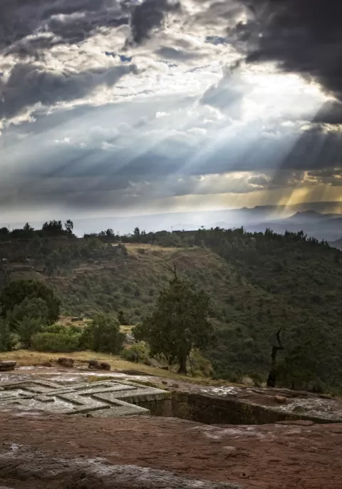 Go on an excursion today to Genete Mariam (34 km and 4 hours), one of the fascinating churches in Lalibela’s outlying area. Genete Mariam is a large monolith carved into a pink-tinged outcrop near the source of the Tekaze River. Supported by pillars, the church differs from the rock-hewn churches in Lalibela in that it is not hidden within a trench but carved openly on a rocky hilltop. According to tradition, Genete Mariam was excavated during the reign of Yakuno Amlak, the king who 'restored' the Solomonic line in the early 13th century. You can also complete any churches you did not complete on the previous date.