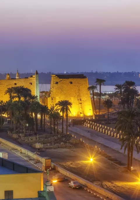 Spend a morning of scenic cruising along the glistening Nile River. Relax on the Sun Deck as you cruise from Esna back to Luxor. First, explore the Temple of Karnak, the largest religious complex in Egypt and one of the largest in the world, covering about 200 acres in a vast network of columns, hieroglyphics, obelisks, sphinxes, and colossi — even a lake is on the grounds. The Hypostyle Hall is a great architectural marvel and filled with its roof blocks, supported by colossal 134 columns standing at 70 feet high, with 12 larger columns standing at 80 feet high lining the central aisle. This hall is still the largest room of any religious building worldwide. After visiting the temple, journey to a museum and discover the art of papyrus making. Learn how the ancient Egyptians used this special plant that flourished in the Egyptian Delta and Nile River Valley. Made from the aquatic papyrus plant, also known as the paper plant, this unique writing material served many purposes in ancient times, from sails, cloth, food, and especially paper for important documents and texts. Afterward, visit the Temple of Luxor, which was constructed over hundreds of years by Amenhotep III, Ramses II, Tutankhamun, and other pharaohs. You then can return to the ship to relax or visit the colorful Luxor Market, where you can find eye-catching piles of spices, jewelry, and clothing, as well as irresistible smells of incense and perfumes.