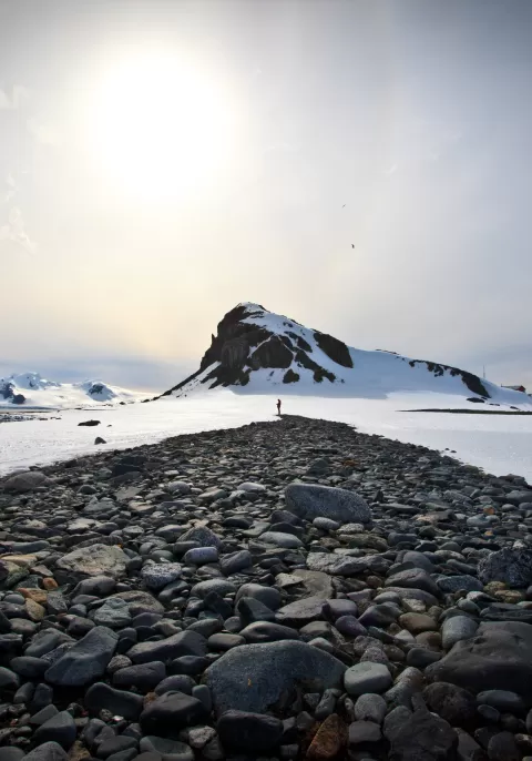 Visit iconic landing sites, Port Lockroy, Hope Bay, and Cuverville Island