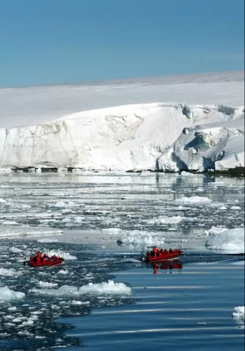 One word best describes the Weddell Sea and Antarctic Sound: immense. That applies equally to the ice formations, penguin colonies, and vast stretches of sea. In the Antarctic Sound and the Weddell Sea, you encounter massive tabular icebergs. These bergs don’t calve from tidewater glaciers but from ice shelves— and many dwarf Ocean Explorer. Some in the Weddell Sea reach the size of a football field or larger. Their smooth, tabletop-flat surfaces reflect the ocean beneath: flat seas yield flat ice. Ice shelves stretch from land into the sea. In the northwest corner of the Weddell Sea, penguin colonies can number in the tens of thousands. For travelers seeking Adélie penguins, Antarctic Sound and the Weddell Sea offer prime viewing of this iconic species—the most southerly breeding penguin, and possibly bird, on Earth (though snow petrels, prevalent here, are also a contender for that crown). Gentoo penguins are found here too, and you’ll have chances to spot chinstraps. The legendary Snow Hill Emperor colony lies in this region; while you won’t reach it, you may encounter individual members on the ice. The Weddell Sea is less visited than the Gerlache Strait, not for lack of beauty, but due to its ever-shifting ice. On this voyage, you’ve added an extra day in this area—time enough for a true adventure into this endless wilderness, and to ensure you can fully embrace the dance with the ice. In the Weddell Sea, penguins are the priority—but ice guides ther course. Alongside towering tabular icebergs, you’ll likely encounter vast stretches of sea ice, more than on the Peninsula’s west side. Your Expedition Team and bridge officers track charts and forecasts, seeking openings to navigate toward the region’s highlights, and intentionally visiting the ice edge to maximize your time in this remarkable environment. The route is shaped by sea ice and weather, but every destination— whichever you visit first or last—is exceptional, evoking words like profound, humbling, and surreal. You’ll make every effort to visit large Adélie penguin colonies—at Brown Bluff, Paulet Island, or Tay Head—ranging from 20,000 to several hundred thousand penguins, including gentoo. Photos and documentaries can’t match the experience of standing before tens of thousands of penguins. The sounds alone—partners calling, chicks crying for parents, wind and waves against the shore, and the distant crack of calving glaciers—create an acoustic landscape of pure wildness. Add the sight of a penguin-covered landscape, and you have an encounter that’s impossible to replicate. The currents of Antarctic and Active sounds are mesmerizing. While you’re in a Zodiac, you may observe ice—large and small—flowing through narrow straits at several kilometers per hour, a raw display of the power of water. From shore, you may glimpse or sense the ice’s movement. Your Zodiac may pass through open water, while your return ride could weave among drifting floes, crackling brash, and scattered bergy bits. The Weddell Sea is known for superb birdwatching—especially cape, snow, and southern giant petrels—and the chance to spot Weddell, crabeater, or leopard seals onshore or catching rides on the drifting ice. Sightings may occur near Adélie colonies or at sites like Kinnes Cove and Active Sound. When ice opens in the Weddell Sea’s northwest, whales follow—lured by the feeding opportunities. Humpbacks and minkes are most common, with occasional killer whales. Conditions may also allow for exploring areas frequented by fin whales, and possibly southern rights. For historians, the Weddell Sea brims with stories—from Shackleton’s legendary Endurance survival and Nordenskjöld’s gallows-humored ordeal on Antarctic to far older histories told by the 60-million-year-old fossils on The Naze, Vega Island, and Cockburn Island. Fossils are discovered here partly because large areas remain relatively snow-free. Volcanic activity has painted these sites—as well as Brown Bluff on the Peninsula’s mainland—in rich reds, burnt oranges, and chocolate browns. In a landscape dominated by white, gray, and blue, these colors add a vivid layer to a region steeped in both human and ancient geological history. This itinerary offers the best of a polar expedition—soak in the vastness of the Weddell Sea and Antarctic Sound from your ship, then get up close to stunning geological formations by Zodiac or kayak.