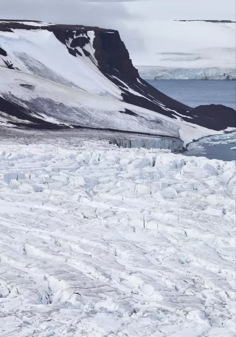 You expect to encounter significant sea ice concentrations during this voyage in the enormous Northwest Svalbard Nature Reserve. Ice can persist very late into the summer in this remote and isolated region, giving it a truly polar character. This reserve covers the rugged northwestern parts of Spitsbergen and Nordaustlandet, the second-largest island in Svalbard. Here, you find the massive Austfonna ice cap, part of which meets the sea along the 45-kilometer ice cliff known as Brasvellbreen—one of the great wonders of the Arctic world. The polar desert environment supports little vegetation but hosts prodigious numbers of seabirds at breeding sites such as the spectacular sea cliffs of Alkefjellet. The probability of encountering polar bears and walrus in this icy wilderness is very high.