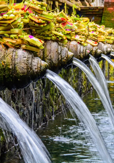 On the way back to Ubud stop at Tirta Empul, a water temple where locals go to take purifying baths on the waters that rush down from the river. The special water or "Tirta" in Balinese is supposed to have healing properties. If you want to partake in the purification ritual bring a bathing suit and a sarong as well.