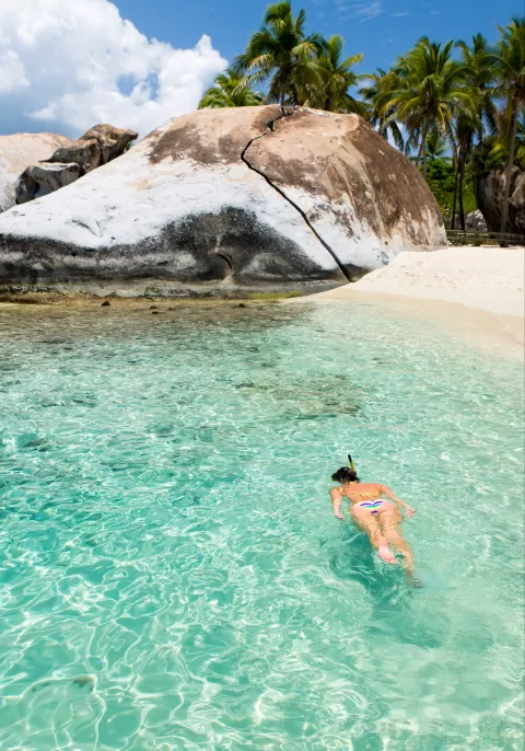 The island of Virgin Gorda, named because it resembles a reclining woman, is part of the British Virgin Islands. It's known for its laid-back pace and picturesque landscapes. Among the natural wonders of Virgin Gorda, the Baths are arguably the most famous. They are a series of pools and grottoes created by a collection of massive granite boulders that were formed by volcanic eruptions.
