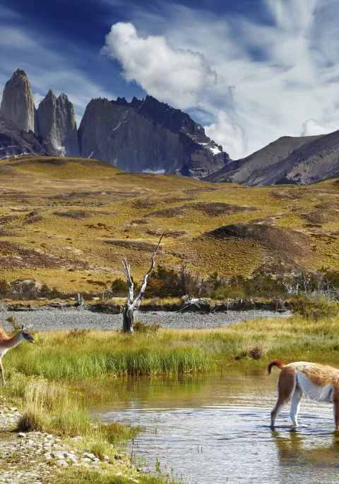 You have two days to experience the wonders of Torres del Paine National Park on various hikes suited to your fitness level. You pass several estancias (ranches) en route to the national park, and you can witness the landscape change from a steppe eco-region to deciduous forest. Along the way, pause amongst the mountains to admire views of the lakes called Amarga, Sarmiento, and Nordenskjold, and Salto Grande. You may be able to see some of the local fauna, including many species of birds including the majestic condor. Look out for foxes, huemul (Andean deer) and guanacos, which are wild camelids related to the llama. The reclusive difficult-to-spot puma has also been seen inside the national park where authorities are happy to report a healthy growing population.
