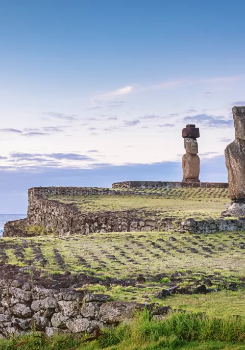 We start the day by visiting Ahu Akivi. Unlike other Rapa Nui ceremonial sites, Akivi is not located on the coast and the moai are facing the ocean rather than with their backs to it - very enigmatic for researchers. According to the legend, these 7 Moai statues represent the first explorers who arrived on Easter Island, including supreme chief and king Hotu Matu'a. Then visit Hanga Poukura, an unrestored Ahu (stone platform) located on the island's southern coast. Finally, head to the Puna Pau quarry, the place where the Moai hats were made.