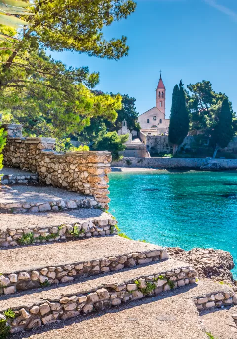 For centuries, Omiš was a stronghold of famous pirates, a symbol of retaliation, courage, and strength in the long historical fight against the Republic of Venice. Your cruise continues across the Brač Channel, all the way to Pučišća, the biggest village on the island of Brač. Nowhere in the system of towns and villages in Dalmatia does terrain play such a compelling role as in Pučišća. Its spectacular irregularity of a steep-sided natural harbor, authentic Mediterranean architecture, and rustic ambience are simply unforgettable. Stone from Pučišća quarry was used to build limestone columns for the White House in Washington, DC, the Vienna Parliament, and many other famous buildings around the world. Pučišća is also home to the only Croatian stonemasonry school. Spend a night in this very quiet town. Enjoy the nightfall as it unifies the distinct features of Pučišća that have intrigued us so much in daylight.