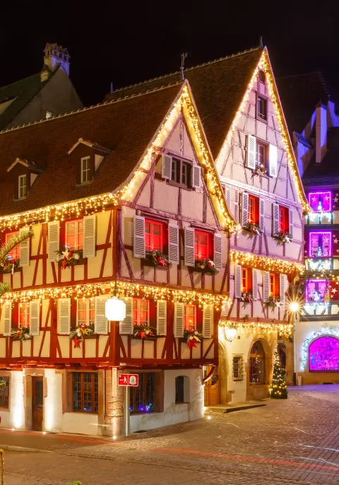 Set out on a discovery tour of the Wine Route with the hostess. You'll be enchanted by its picturesque villages wonderfully decorated for Christmas. Visit a wine cellar followed by a tasting of local Alsatian wines. In the afternoon, you will discover the Christmas Market in Colmar. In the wonderful setting of the old town, the beautifully decorated streets will invite you to linger and daydream. The coach will take you back to Strasbourg. Accommodation on board.