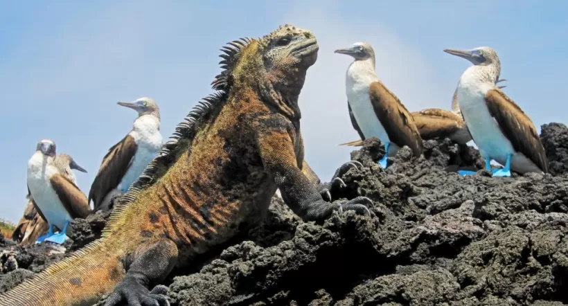 Highlights & Animals: Land iguanas (the biggest in the Galapagos), hawks, coral reef, giant tortoises; snorkeling: turtles, rays, tropical fish