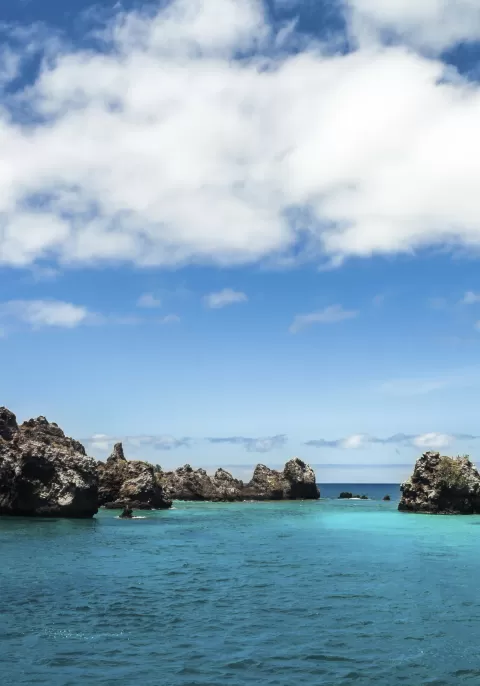 A near-vertical wall of volcanic rock that plummets to the bottom of the sea, the Cape Marshall dive site boasts the big stuff: manta rays, hammerheads, sunfish (Mola mola), and sometimes huge schools of the endemic salema.
