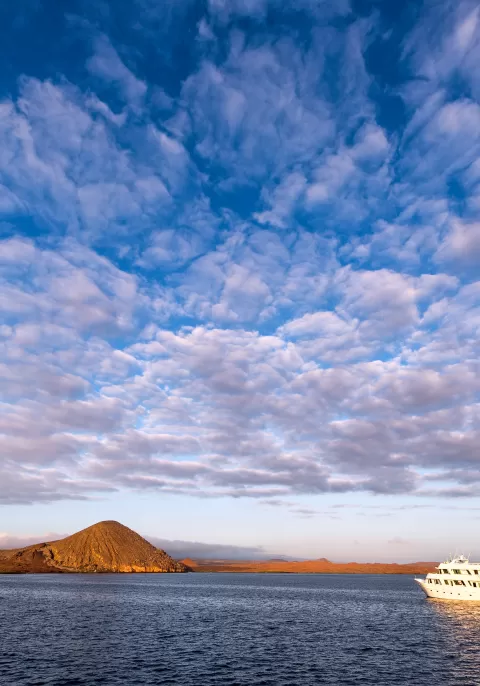 This morning, a Galapagos icon awaits Bartolome Island. A great way to start the day, with a steep climb up a wooden staircase: the panoramic view from the top is well worth the effort! Following the walk, take a panga ride around colossal Pinnacle Rock in search of Galapagos penguins and other wildlife.