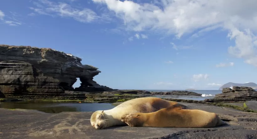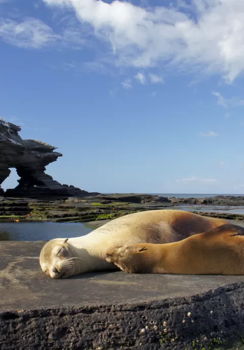 Mosquera Island is a small beach island located in the channel between North Seymour Island and Baltra Island. This white sand beach is home to a healthy sealion colony.