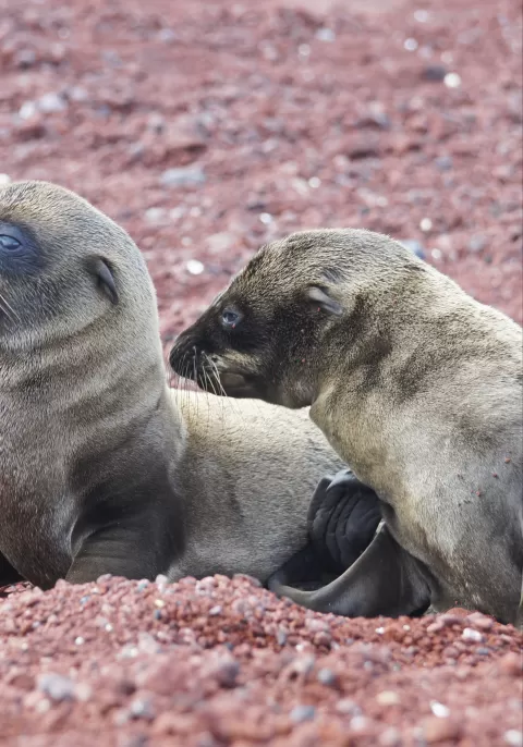 Visit the white-sand coral beach of Darwin Bay which includes a half-mile trail (0,75km) that winds through mangroves filled with land birds. Nazca boobies, red-footed boobies, and swallow-tailed gulls, which can easily be spotted here. Continuing down the path, tidal pools reveal sea lions swimming playfully. At the end is a spectacular view of a cliff.