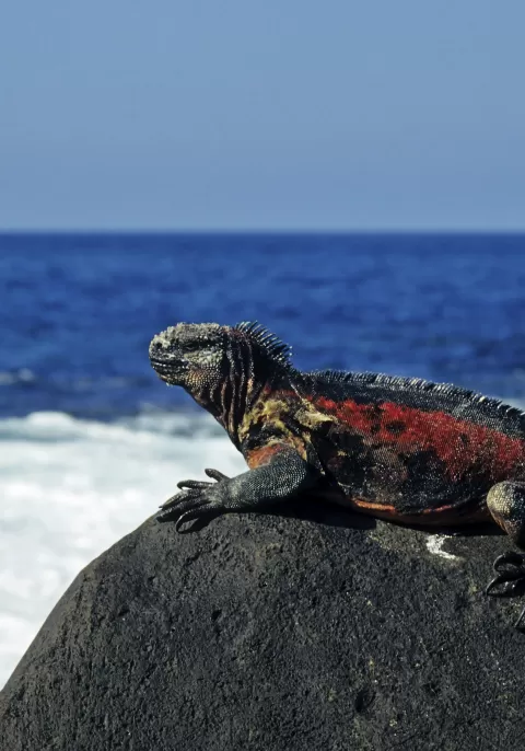 Egas Port, also known as James Bay, on Santiago Island is home to the curious Galapagos hawks and quick-footed Galapagos lava lizards. The trail leads to the coastline with gorgeous tide pools and grottos full of fauna. Here the Galapagos fur seals bathe in the sun. This is also a great snorkeling site.