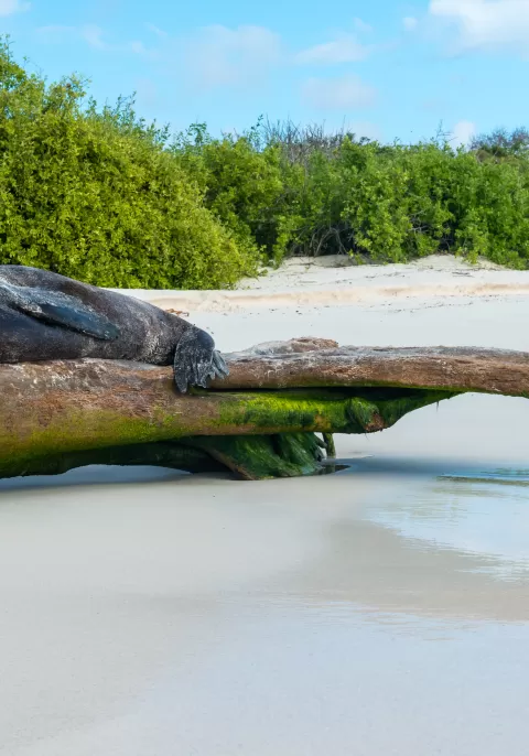 Urbina Bay is located at the east base of the Alcedo volcano, with an approximately 3200m path connecting it to the beach, where, after a beach landing, cross through the coastal zone, traversing sand, rocks, lava, corals, and plant formations. At this site, you may see large-sized land iguanas, as well as giant Galápagos tortoises, flightless cormorants, blue-footed boobies, Galápagos penguins, pelicans, and marine iguanas.