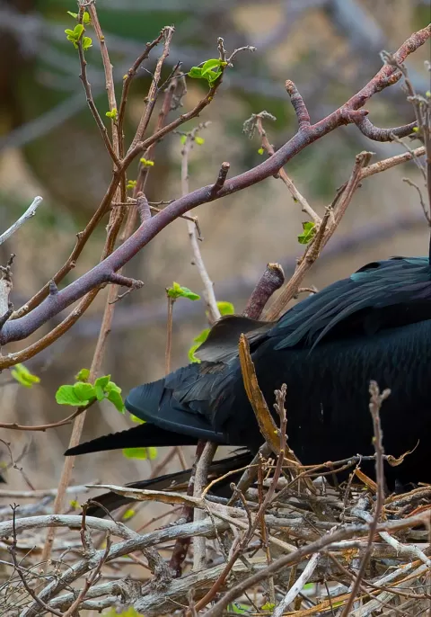 Darwin Bay on Genovesa Island is a birder's dream come true. When you set foot on the beach, you will be amazed by the spectacle of hundreds of boobies, gulls, and frigatebirds soaring above, nesting in the bushes, or roosting on the sandy terrain. This immersive wildlife trail hosts sea lions and marine iguanas by the sea, and inland you'll encounter night herons, lava and swallow-tailed gulls, Darwin finches, Galapagos doves, mockingbirds, and more.