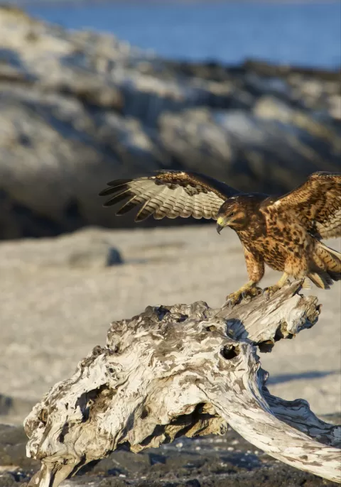 From your dinghy ride, as you head to shore, you are first humbled by the immensity of the stunning cliffs of the Sorcerer's Hill. You can enjoy simply sharing the beach with sea lions, snorkeling from shore, or taking a walk to a hidden lagoon where you might spot black-necked stilts, ruddy turnstones, whimbrels, and white-cheeked pintails.