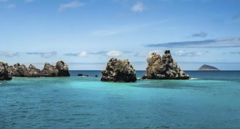 Spectacular site, surrounded by immense cliffs of an eroded volcano. Studded with resting seabirds like brown noddies and Nazca boobies. Superb snorkeling with unique fish species. Swim with penguins and green turtles.