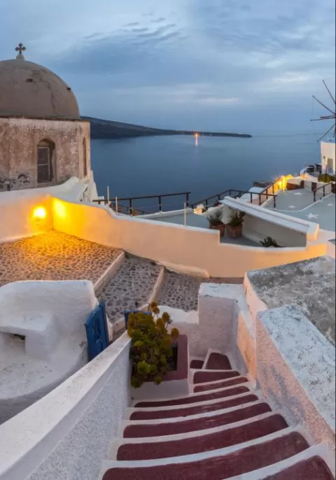 Santorini – Oia Village & Venetsanos Winery: Visit one of the most photographed villages in the world, Oia. Walk through the cobblestone streets and the numerous artistic shops. Enjoy a visit to one of the island's famous wineries offering stunning views of the caldera and the Aegean Sea. Board your local tender and after 15 minutes reach the port of Athinios. Continuing your tour, visit one of the well-known wineries of Santorini, Venetsanos Winery. The Venetsanos family has a long tradition in wine production which is exported extensively to other countries. Have a chance to taste three different wines, the white Santorini Asyrtiko, the red Mandilaria, and the sweet dessert wine Vinsanto. Following your visit to the winery, return to Fira town where you can either take the cable car or wander around.