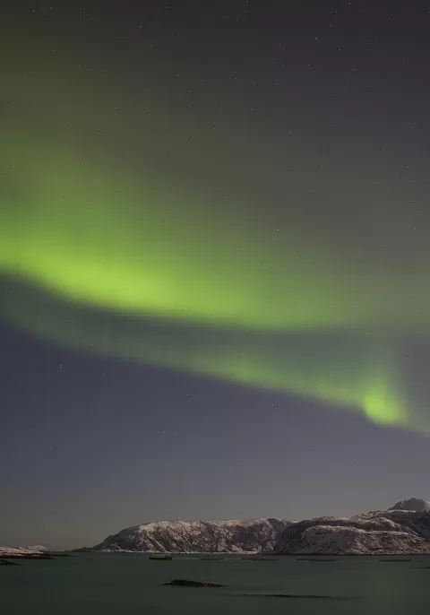 Today marks a visit to the east entrance of one of the most impressive fjords in the world: Ø Fjord is almost 40 nautical miles long (74 km, 46 miles), with mountains on each side up to 2,000 meters high (6,562 feet), and icebergs that drift over depths of more than 1,000 meters (3,281 feet). The aim is to land at Jyttehavn and hike the tundra in mythic surroundings. You may also sail into Harefjord, Rypefjord, and Rödefjord, walking into C. Hoffmanhalvöya and on Storö. You then land near Sydkap, where you can see colossal icebergs, some of them over 100 meters (328 feet) high and more than a kilometer long (.62 mile). Most of these bergs are grounded, as the fjord is only about 400 meters deep (1,312 feet). At Sakatajik you can also view the remains of Thule winter houses. As many as twenty people lived here once, hunting Greenland whales and building houses out of their vertebrae. If there is not too much cloud cover, you might enjoy the magical lightshow of the aurora borealis today.