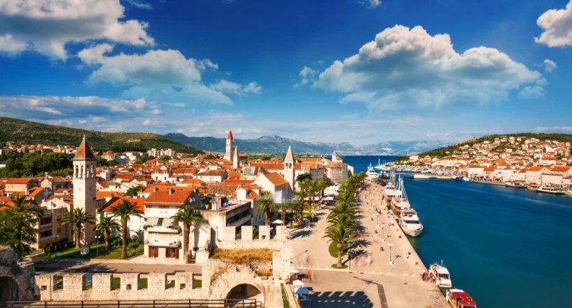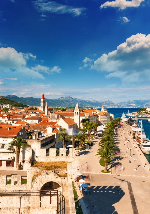 Trogir is a historic city built on an island connected to the Dalmatian coast. It dates back to ancient times and is recognized as a UNESCO World Heritage site due to its preserved Greco-Roman street layout. The former cardo maximus now serves as the main street in the old town. The area includes shops, galleries, and bakeries. Saint Lawrence Cathedral features three naves and is a notable landmark. The Kamerlengo Fortress offers a view of the old town and surrounding coastline from its tower.