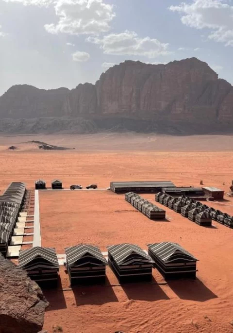 Nestled in the heart of Wadi Rum's majestic sandstone cliffs and red sands, the camp offers cozy and comfortable Bedouin-style tents meticulously designed to provide a peaceful retreat after a day of exploration. Each tent is furnished with comfortable bedding and traditional rugs, providing guests with an opulent yet rustic experience.