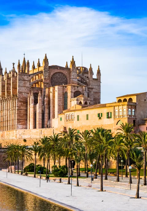 Palma de Mallorca is a place filled with treasures: stunning coves, towering limestone cliffs that drop into the sapphire and turquoise waters of the Mediterranean, and wide plains dotted with almond trees, olive groves, and vineyards. When visiting the capital of the Balearic Islands, explore its iconic landmarks, including the famous cathedral, and stroll through its charming old streets. The island’s rich historical heritage serves as a beautiful backdrop to the vibrant and welcoming cosmopolitan atmosphere of the Mediterranean.