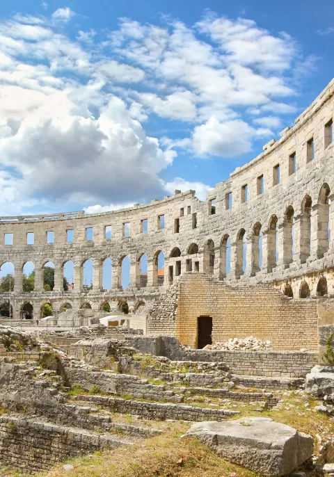 The Pearl of the Adriatic, lying at the southern tip of the Istrian Peninsula, Pula is undoubtedly the most Roman of all Croatian towns. Some of the greatest pages in history were written here, as the breathtaking ancient remains testify. Explore the amphitheater, the Twin Gates, the Gate of Hercule, and the triumphal Arch of the Sergii. Stroll through the busy lanes in the old town, enjoying the warm welcome of the locals, and you may be tempted to try the famous Kvarner scampi or Istrian ham.