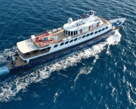 Aboard our small ships, you will find elegant dining rooms, spacious sun decks, and comfortable lounges. No pools are offered as it is common for our guests to swim off our ships or for passengers to reach secluded beaches by tender. Your cruise program is either with breakfast plus lunch or dinner or with all meals. Meals are served at set times and there is flexible seating. Limited laundry service is available at a cost on our small ships. The shore excursions are offered at a supplemental cost. The M/Y Pegasus, the M/Y Harmony V, and the M/Y Variety Voyager offer a small wellness suite with massage and other beauty treatments. Sports activities: Swimming off the ships is possible as well as snorkeling, kayaking, and canoeing. In some destinations, it is possible to organize diving excursions.