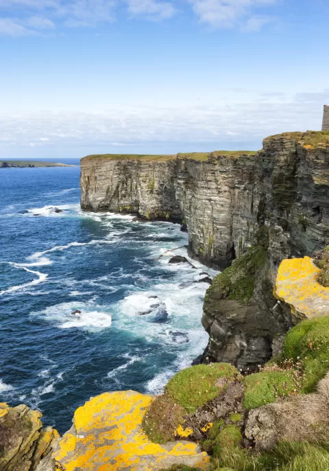 Further north, Shetland is another archipelago with a truly unique culture and feel. A fusion of Norse and Scottish history and culture—and a visceral connection to the wind, weather, and sea—Shetland feels like no other place in the UK. Here, you intend to explore the bird colonies of Sumburgh Head, 100-meter (328 feet) cliffs that descend into the rich marine environment below, framed by jagged rocky outcroppings that pierce through the sea. Common species spotted here include Atlantic puffins, guillemots, razorbills, and kittiwakes. Additional marine wildlife in the vicinity includes white-beaked dolphins, minke whales, and occasionally orca and humpback whales. The cliffs themselves are impressive in their rugged beauty, marked by a picturesque lighthouse that serves as an important beacon for mariners transiting the area. Not far from Sumburgh Head, and deeper into the West Voe of Sumburgh, is the world-famous Jarlshof—an archaeological site considered to be among Europe’s most important. Situated among soft green pastoral farmland, and just above a beautiful sandy Scottish beach, the area showcases thousands of years of human history, with Neolithic, Bronze Age, Iron Age, and Viking sites all immediately visible and within close proximity to one another. Roundhouses from the Iron Age, circa 400–800 BCE, are well-excavated, as are longhouses and stone walls from the Viking Age. Additionally, the Old House of Sumburgh—dating to the 15th century, when Shetland passed from Norse to Scottish control—stands among ruins that are thousands of years older. Jarlshof is a true tapestry of history, with many layers and eras woven together. There are plenty of opportunities to be active on this journey. You’ll take to the Zodiacs to explore the coastal shorelines for cruising as well as shore landings. If weather permits, the sea kayaks are deployed and paddle programs. And whenever you’re back on the ship, head to the outer decks—especially as you approach the excursion sites—for birds and marine mammals.