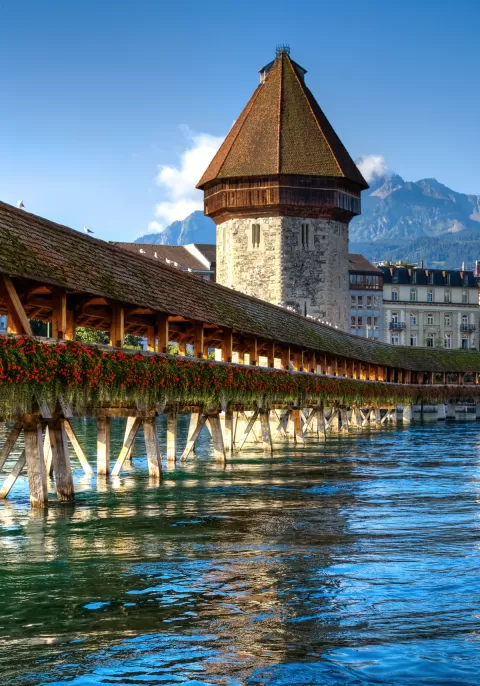 The quaint Swiss city of Lucerne is a major highlight on Rhine River cruises that generally start in Zurich then travel to Lucerne by land before boarding your luxury-class riverboat in Basel and sailing the length of the legendary Rhine River through Germany and France all the way to Amsterdam. This charming town boasts picture-postcard beauty, with an ancient covered wooden bridge, candy-colored houses, and that relaxing atmosphere characteristic of central Europe. As you travel between Switzerland's Zurich and Basel, you will spend just under two days exploring delightful Lucerne, including a trip to scenic Lake Lucerne.