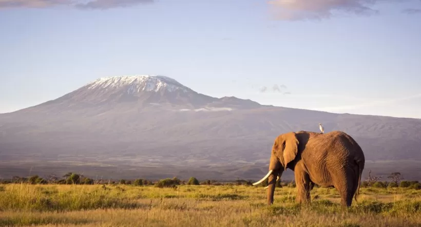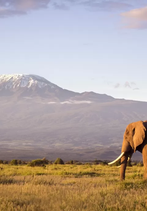 Elephant in front of Mt Kilimanjaro