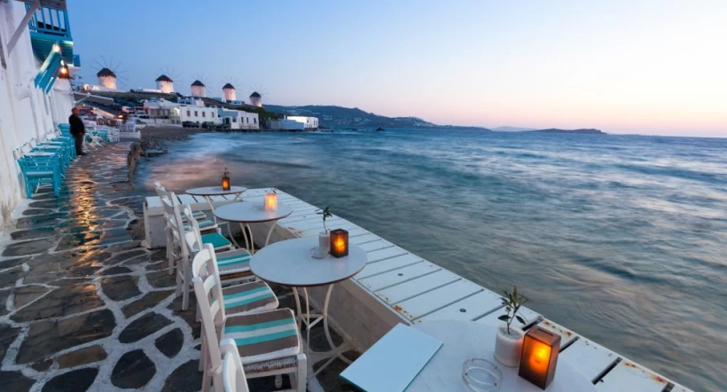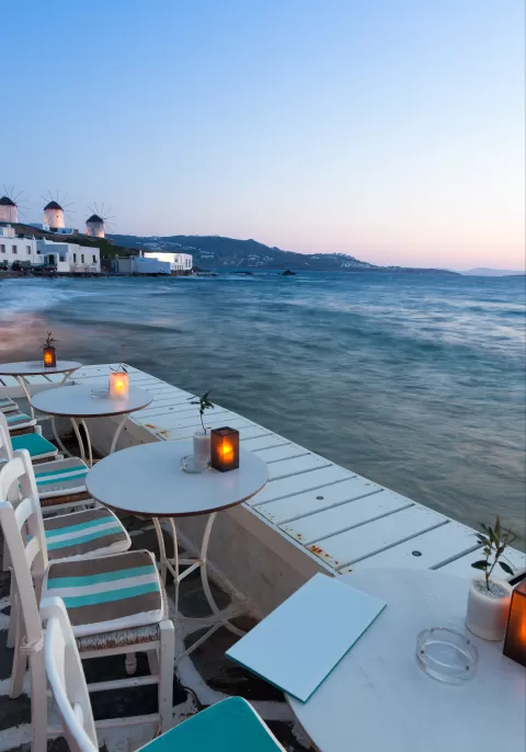 A small rocky island in the heart of the Cyclades archipelago, Delos is one of the most important mythological and archaeological sites in Greece. In the afternoon, you’ll sail on to another Greek island, Mykonos. This world-famous island’s allure rests in its blend of traditional Greek culture and cosmopolitan flair. Whitewashed houses with vibrant blue doors lining the streets of atmospheric Mykonos town add to the charm, so too, the island’s historic windmills.