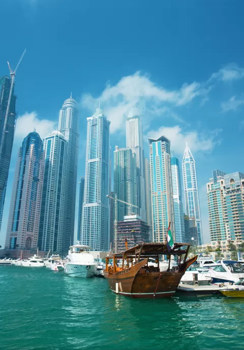 Take a small ship cruise to the beautiful nation of the United Arab Emirates, located on the Arabian Sea in Southeast Asia. This nation has a population of almost 10 million inhabitants with the official language being Arabic. Don't miss out on the picturesque capital of United Arab Emirates, Dubai filled with staggering skyscrapers and gorgeous beaches. In Dubai tour the tallest building in the world - the Burj Khalifa. There's a lot more to do including touring mosques like the Sheikh Zayed Grand Masque and visiting museums like the Louvre Abu Dhabi, the Sharjah Art Museum, and the Dubai Museum. Contact our travel specialists to start planning your ideal trip to the United Arab Emirates today!