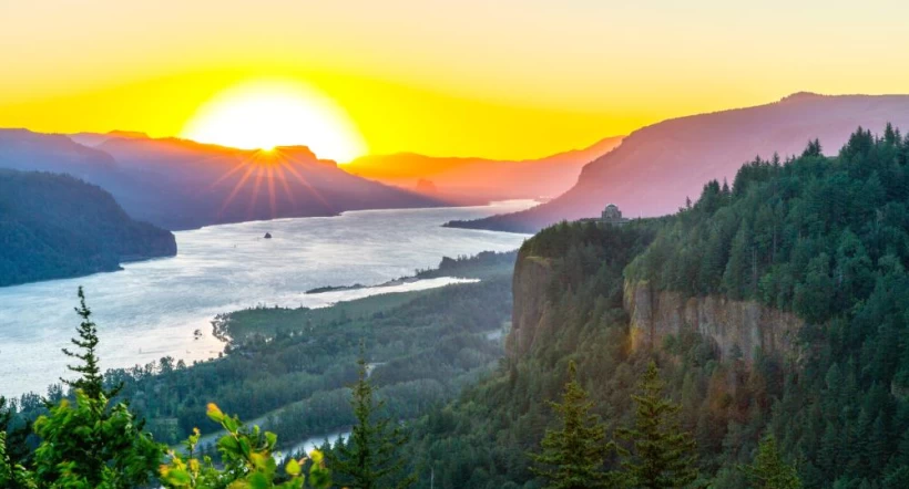 See majestic Multnomah Falls views cascading down Columbia Gorge’s cliffs